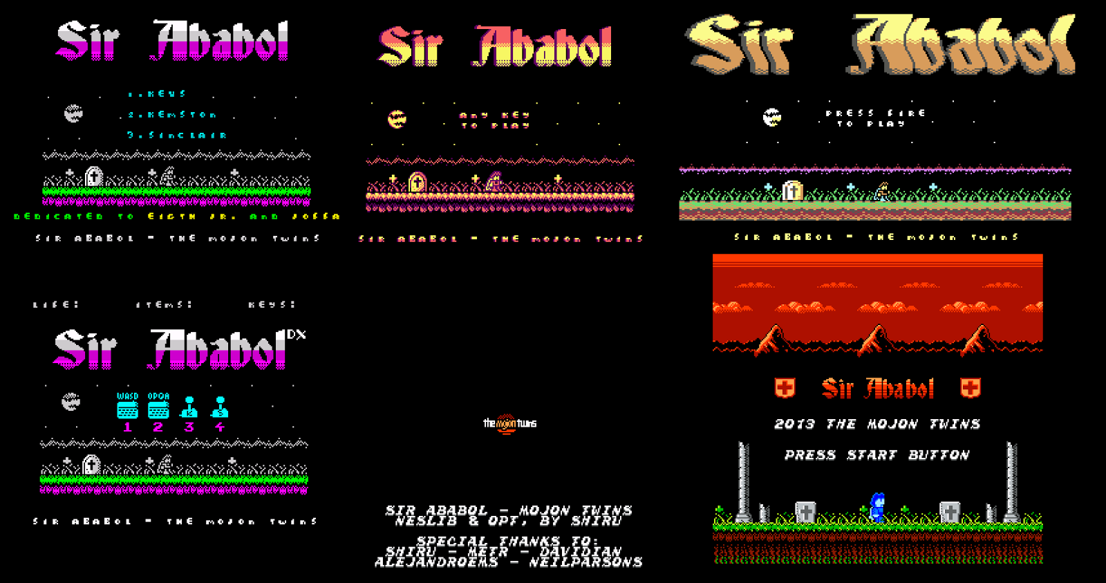 I have given the scores based on what I know of the overall quality of what new games for old machines were about five years ago, in addition to their comparative quality to each other. It's only fair that the scores for the NES version and the Deluxe version have been given in their own context. That the scores look for the most part very much the same, is merely a major coincidence... or perhaps I just happen to like the number seven a lot. But the thing is, Sir Ababol is something between a mediocre and a good game, and none of its versions change this. I hope the scores reflect my analysis and review of the game as much as I hope it's not too offensive to either the creators or the fans.