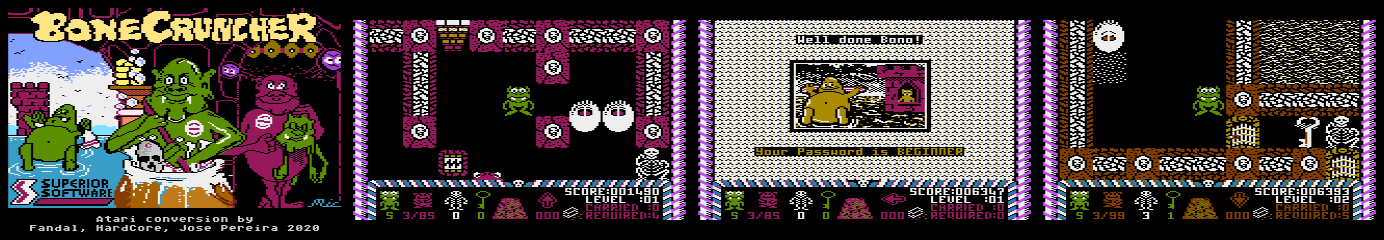 | Screenshots of the Atari 8-bit conversion of BoneCruncher |